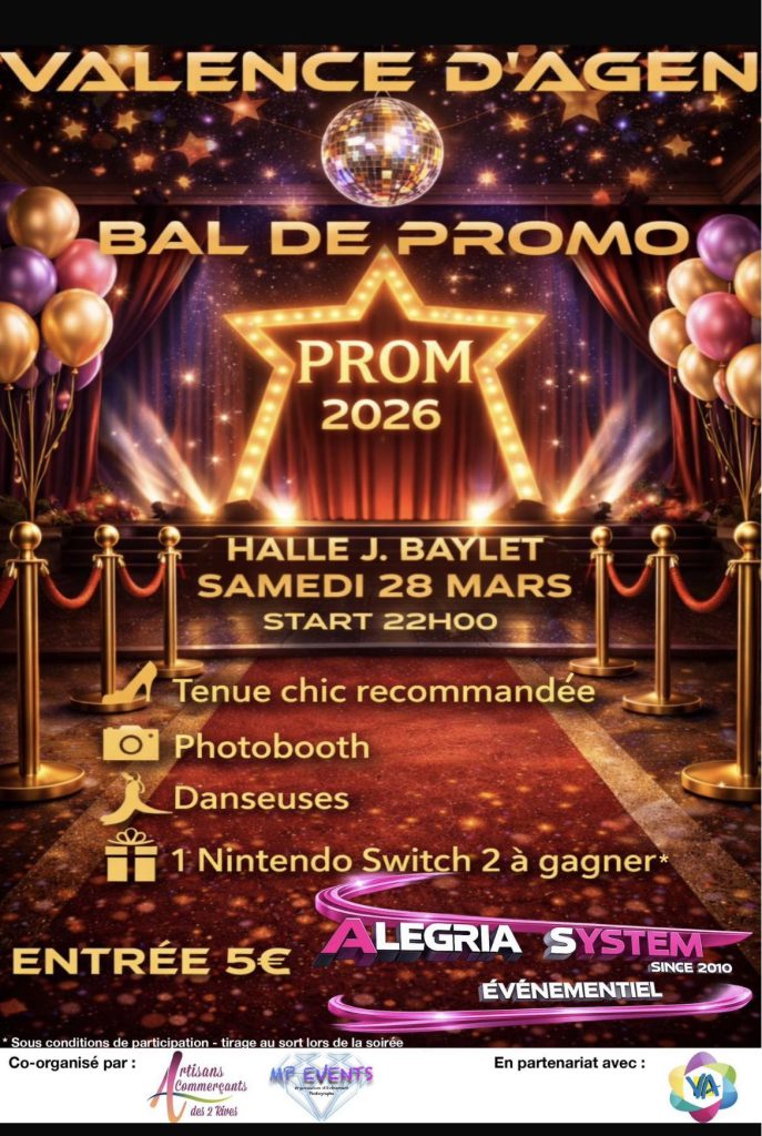 Sortez vos plus belles tenues, le tapis rouge est déroulé à Valence d’Agen ! 🥂 Une soirée d’exception vous attend à la Halle J. Baylet pour fêter l’événement le plus glamour de l’année.