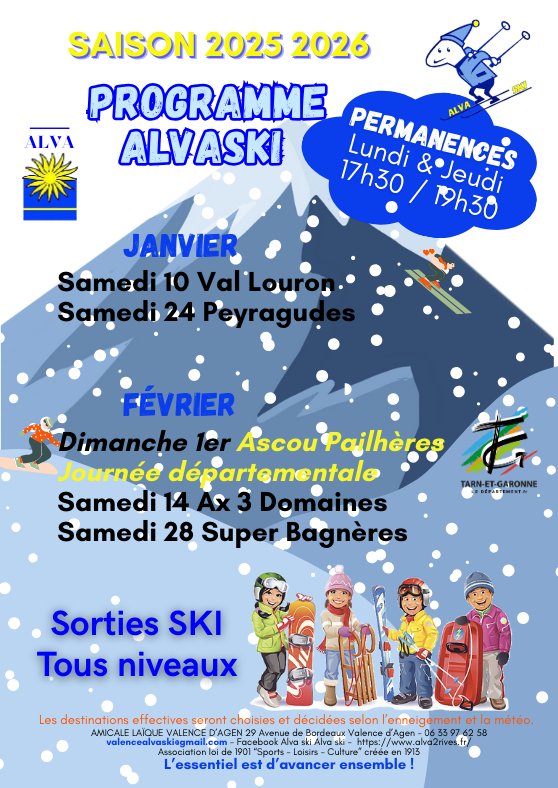 La saison 2025-2026 est officiellement lancée ! Que vous soyez débutant ou mordu de glisse, rejoignez l’Amicale Laïque de Valence d’Agen pour des sorties ski tous niveaux.