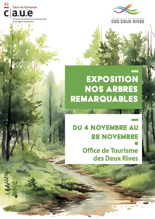Cette exposition, proposée par le CAUE du Tarn-et-Garonne (82) en partenariat avec la Communauté de Communes des Deux Rives, met en lumière la richesse et la diversité des arbres qui façonnent nos paysages.