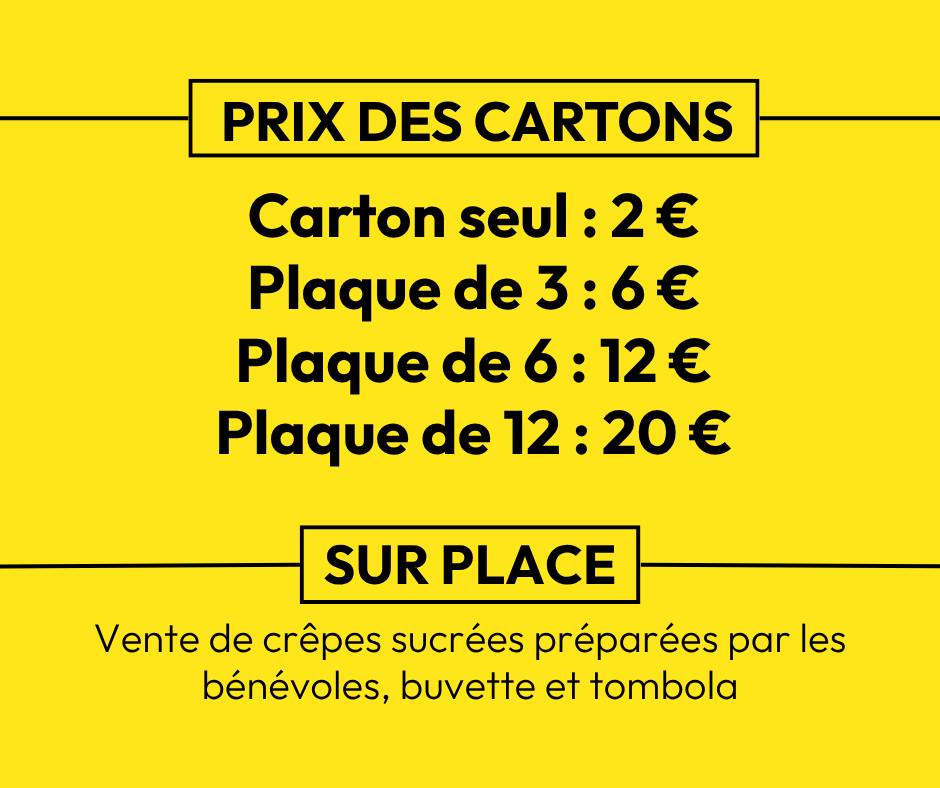 SUR PLACE : Vente de crêpes sucrées maison par nos bénévoles, buvette pour se rafraîchir et une tombola pour encore plus de chances de gagner !