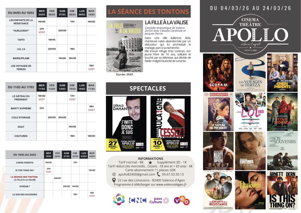 VALENCE D’AGEN — Découvrez les films à l’affiche de l’Apollo.