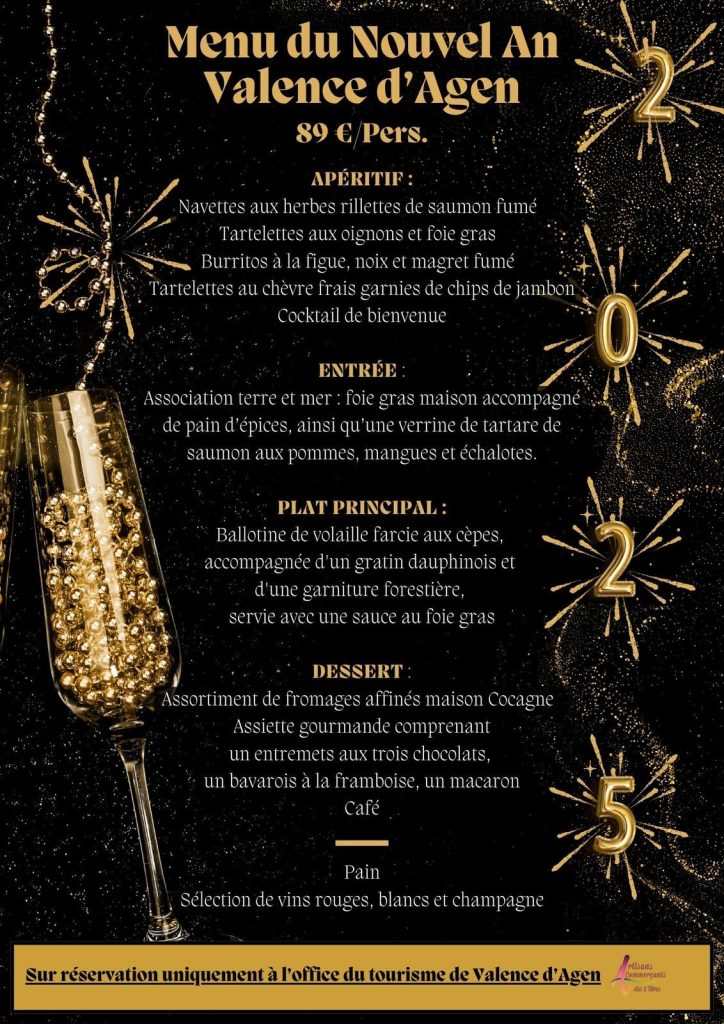 Valence d’Agen🎉 Nous vous invitons à une soirée mémorable pour le réveillon du Nouvel An ! Rejoignez-nous pour une soirée dansante cabaret qui vous plongera dans une ambiance festive et élégante.